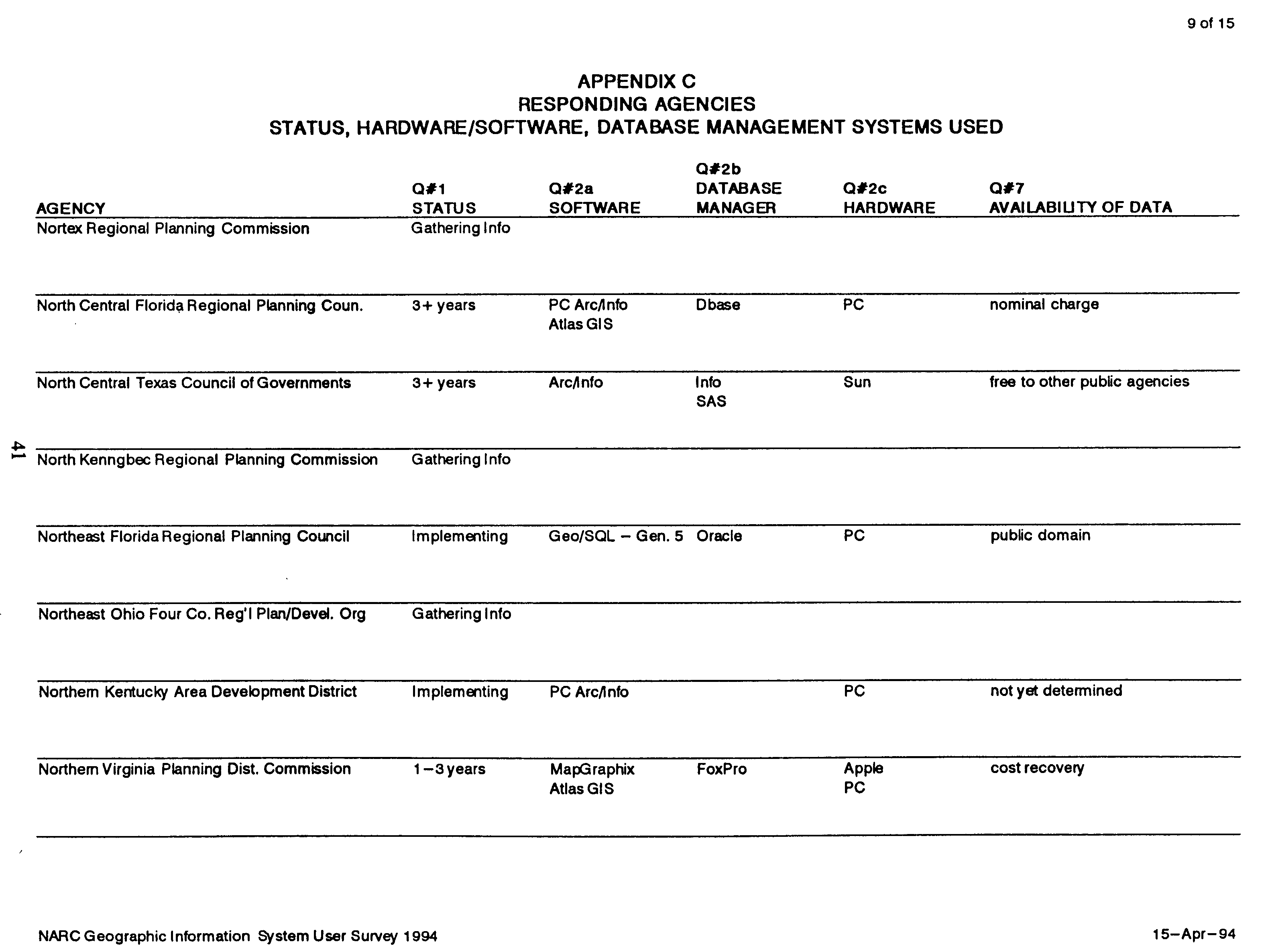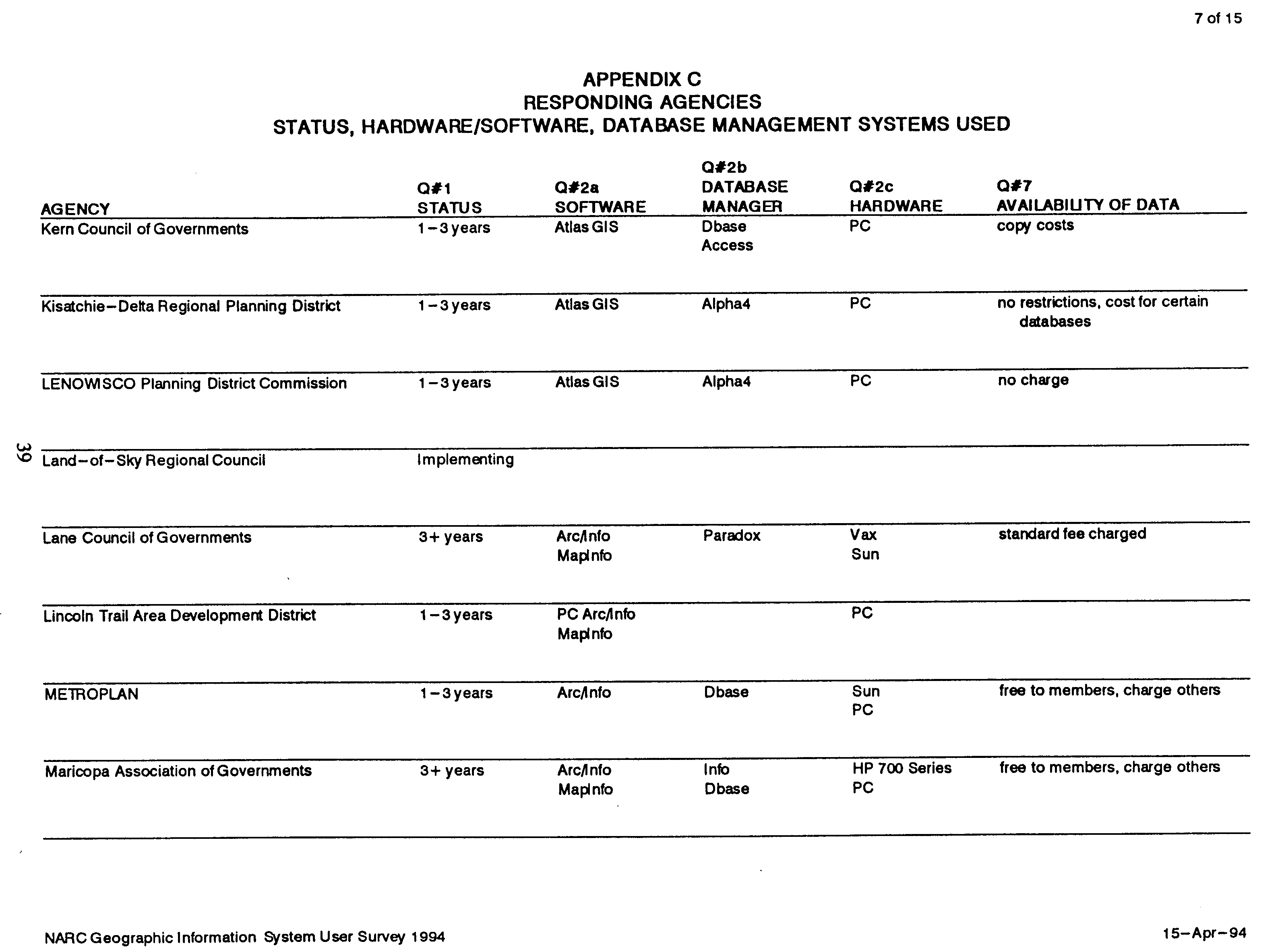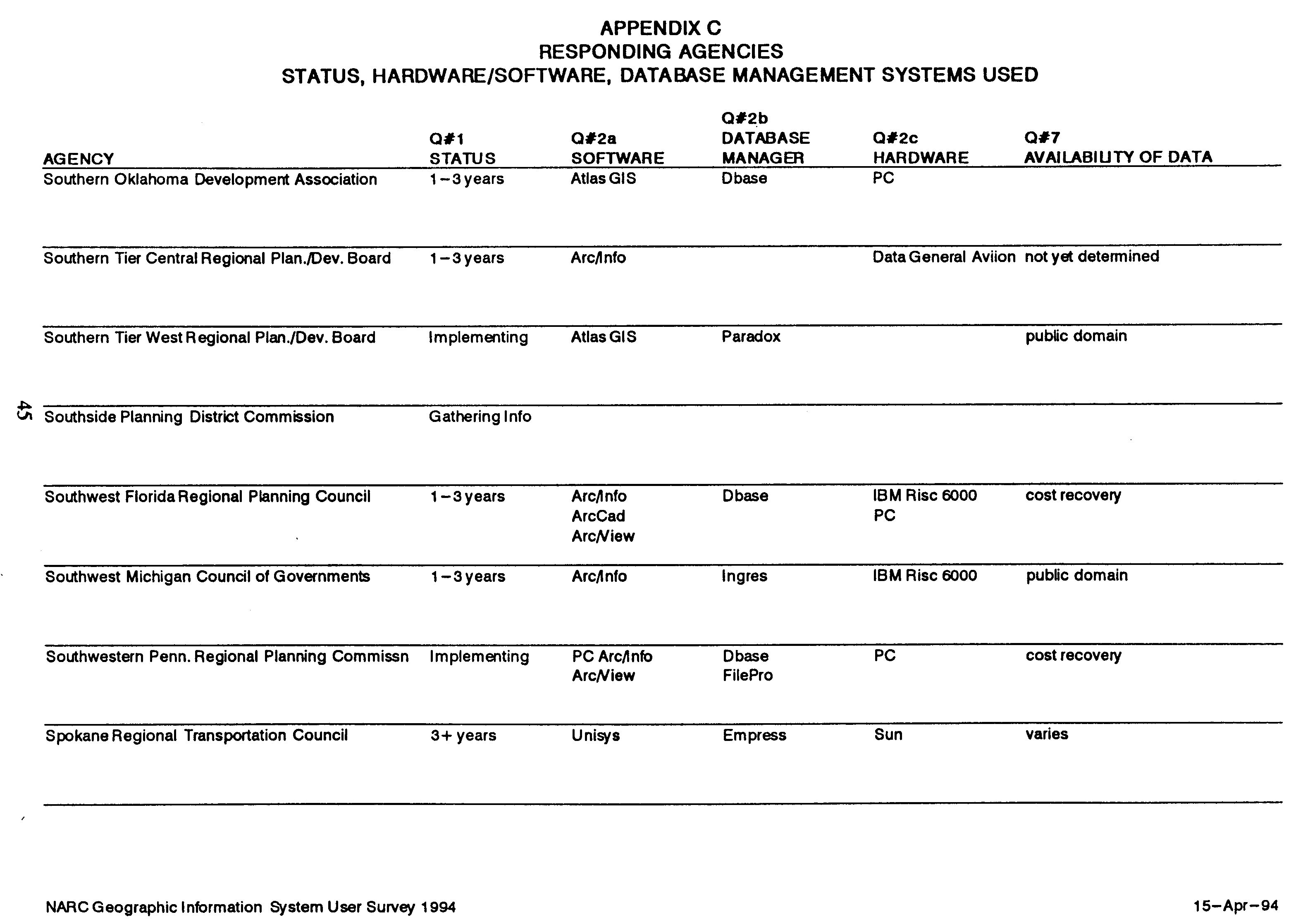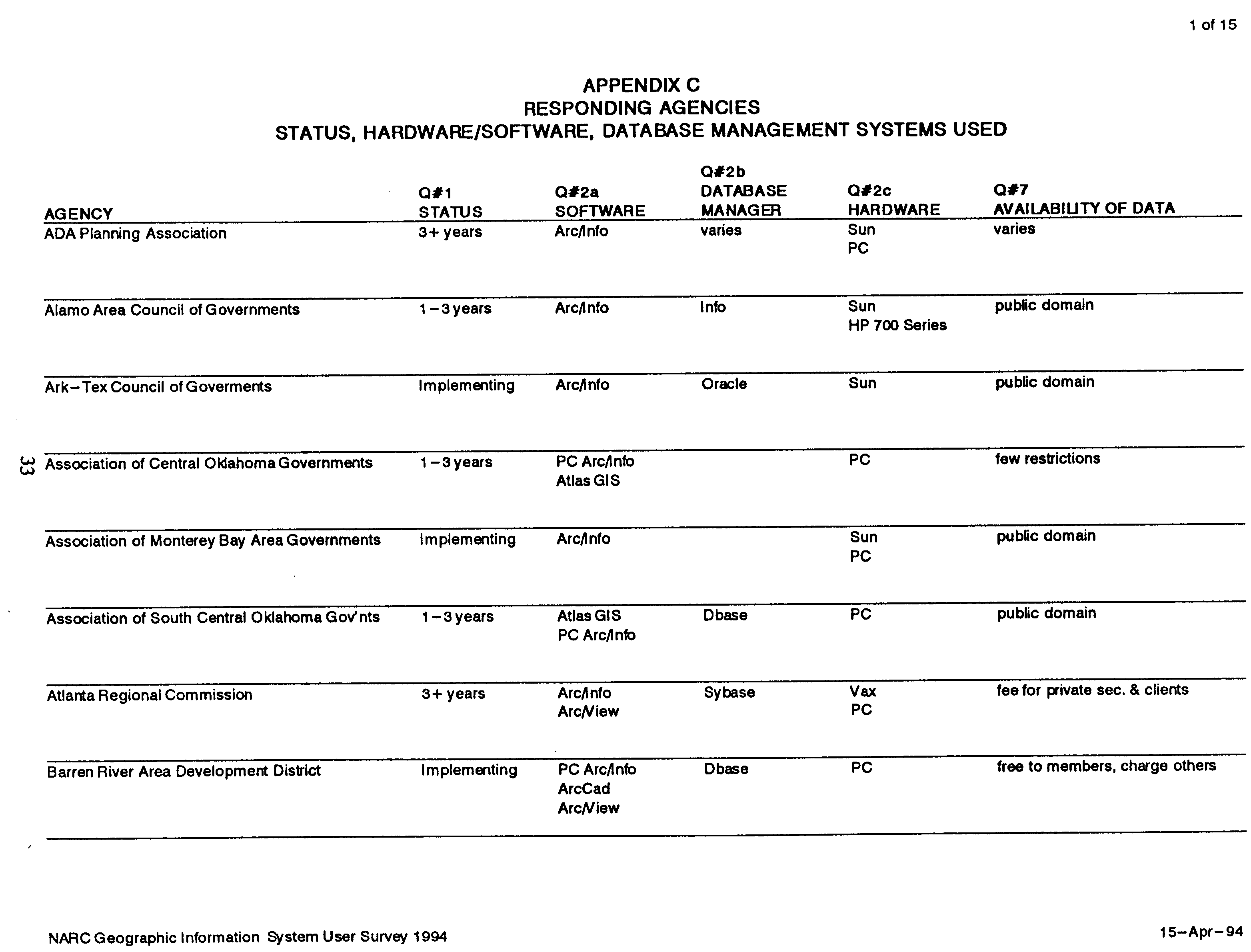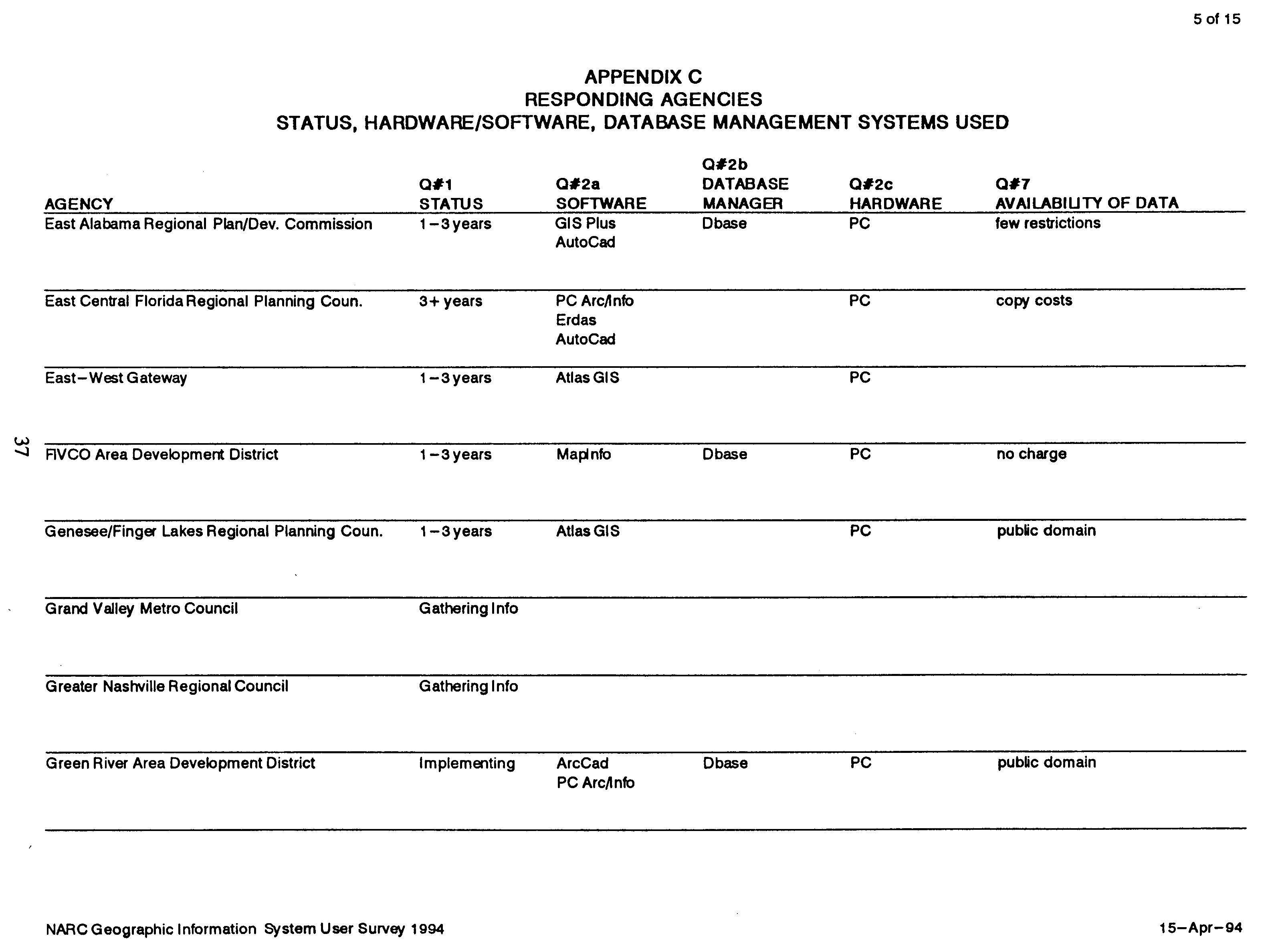 Summary of the 1994 NARC Geographic Information System (GIS) User Survey