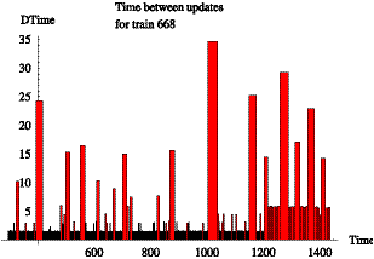 Figure 6.5: Time between reports for train 668 on day