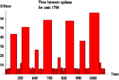 Figure 6.7: Time between reports for train 1706 on day