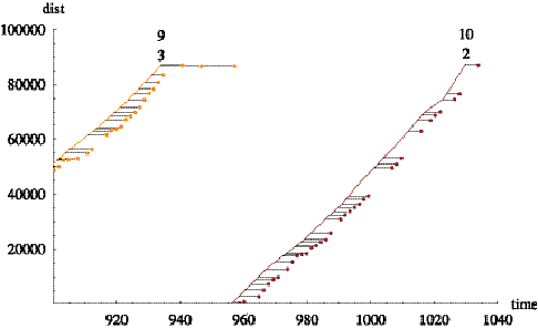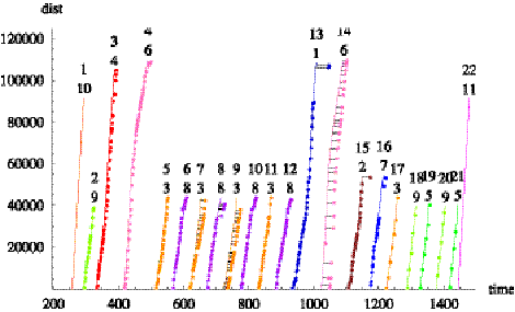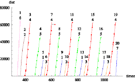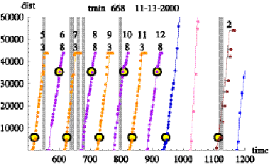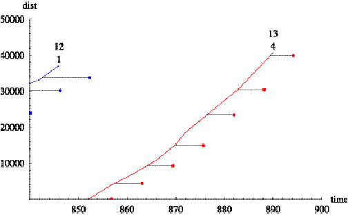 Figure 6.8: Time series of distance into trip for train