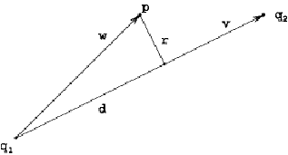 Let v = q2 - q1 and w = p - q1